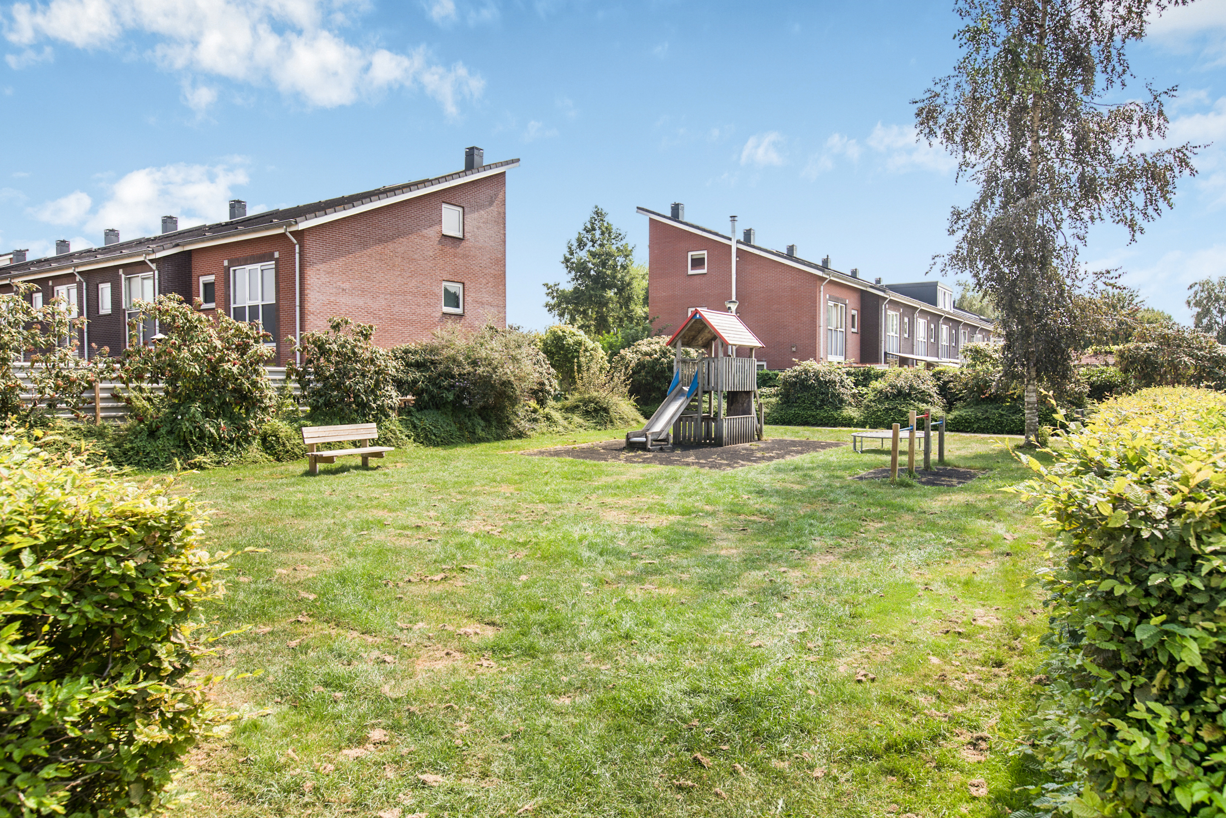Achter de woning is een speelveld gerealiseerd met diverse speeltoestellen voor