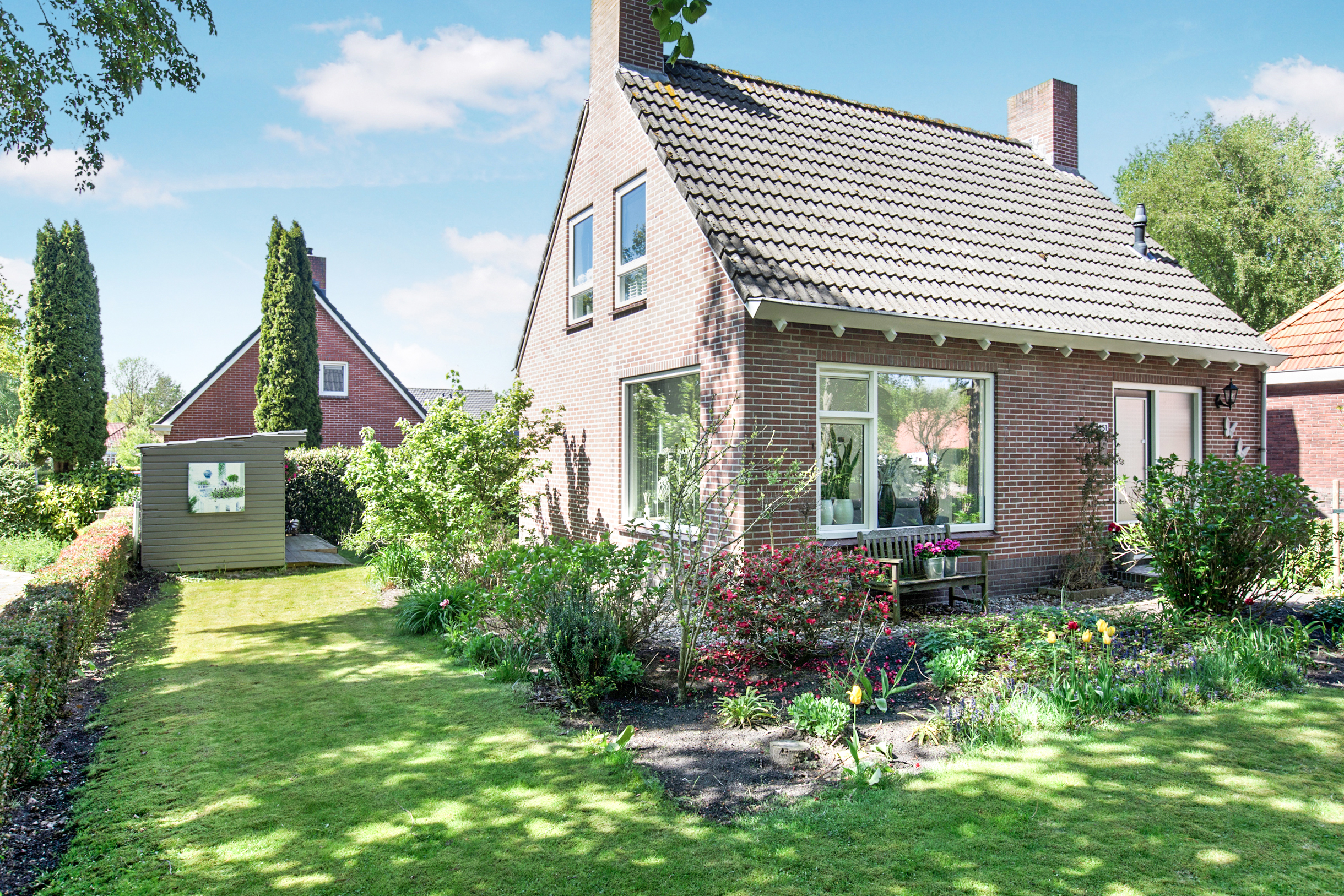 woning hoort een stenen garage en in de achtertuin staat een veranda. De achtertuin ligt op het